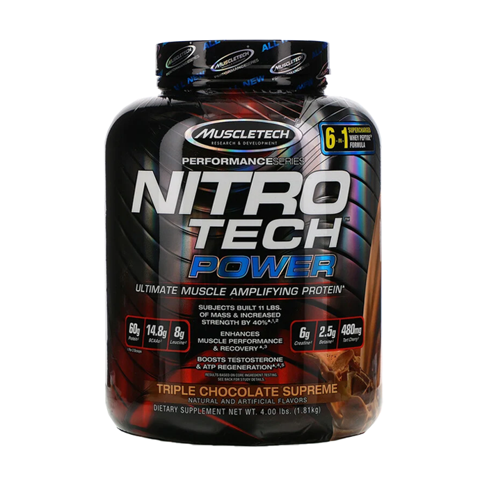 Nitro-tech Power features 60g of Protein, including ultra clean whey peptides (hydrolyzed whey protein) and whey protein Isolate for a clean macronutrient profile. Nitro-tech power is designed for anyone looking to build muscle, enhance performance and put on significant size. Nitro-tech power contains several key ingredients shown in multiple clinical studies to help you pack on more muscle than ever, while still delivering a powerful blend of premium 100% whey protein. Each flavour of nitro-tech power under goes multiple rounds of internal taste tests resulting in a great tasting formula that doesn't pack the extra sugars and carbs - giving you more protein per scoop and a better overall macronutrient profile.