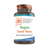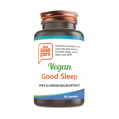 Vegan Good Sleep contém uma mistura única de nutrientes que suportam uma noite de sono reparador. Também inclui L-teanina, 5HTP, Erva-cidreira e Lúpulo. 5HTP é usado para fazer melatonina e serotonina. Acalma o sistema nervoso e ajuda a relaxar. As cerejas de Montmorency contêm naturalmente melatonina, o hormônio que geralmente é produzido durante a noite. Ela provoca sonolência e ajuda a um sono de qualidade mais profundo. L-Theanine induz um profundo estado de relaxamento, aumentando a atividade das ondas alfa, as 'ondas cerebrais do sono'. É provável que a erva-cidreira reduza a ansiedade e promova o sono 5HTP aumenta os níveis de serotonina para restaurar padrões de sono saudáveis, garantindo que você adormeça mais rápido e tenha uma qualidade de sono mais longa. Também pode ajudar a melhorar o humor e reduzir a dor.